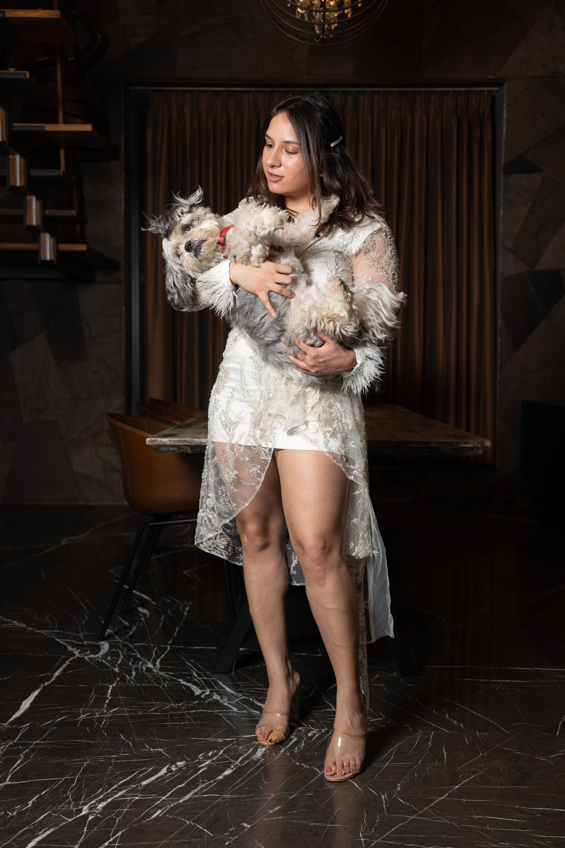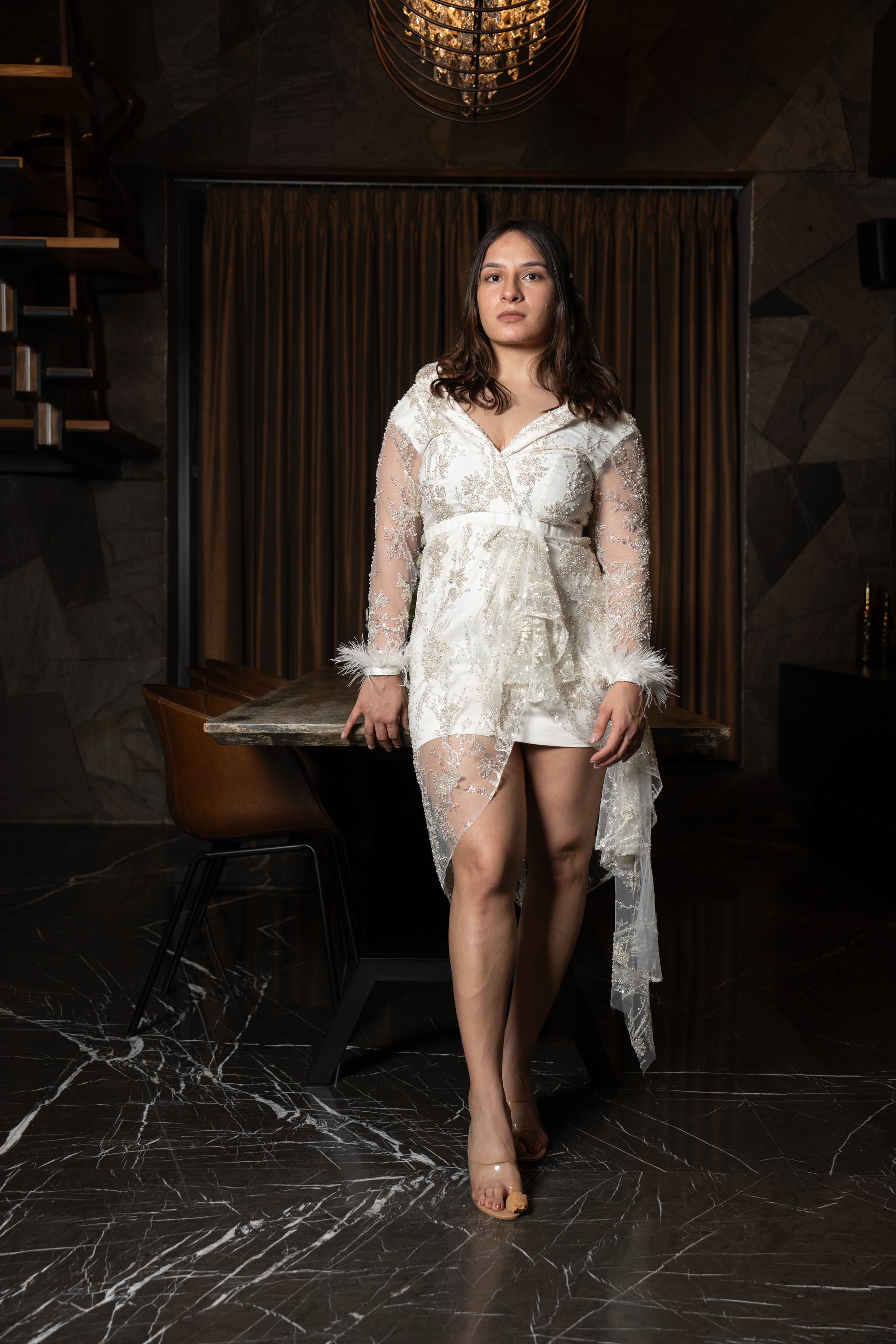 The Moonlit Veil Dress is a striking fusion of elegance and allure, crafted for